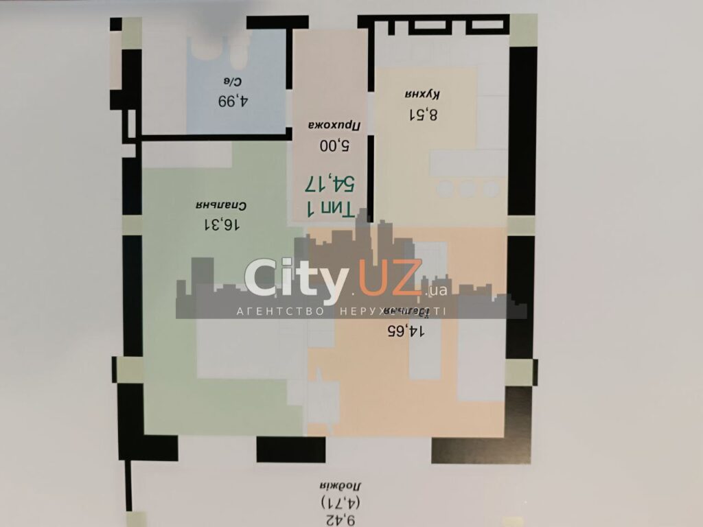- кухня- вітальня + спальня 54,17 м. кв.